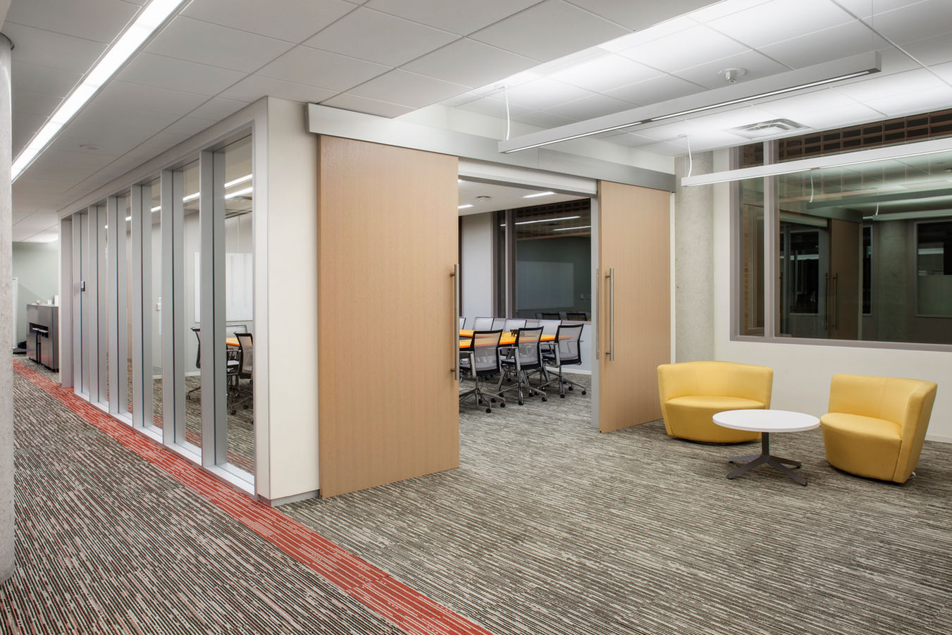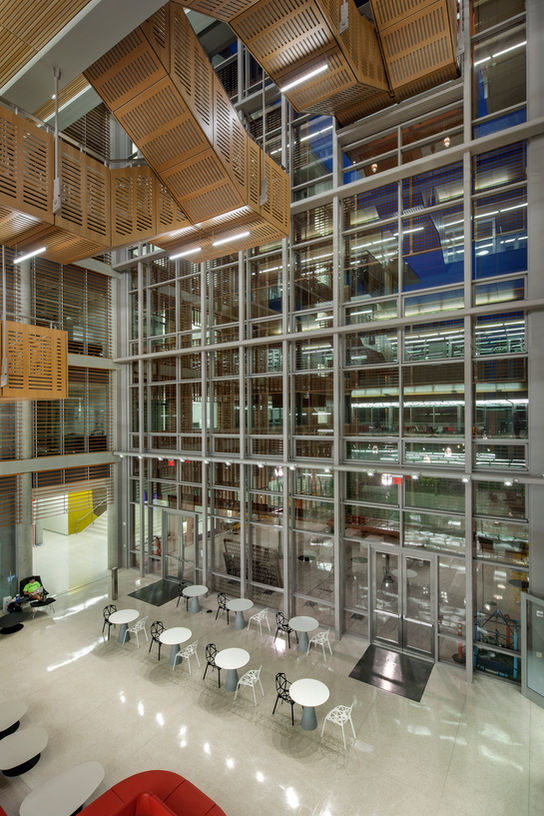 The University of Texas at Austin desired to create a high-tech commercial workplace environment where its students could thrive with an environmentally responsible, sustainable design for UT Austin’s top 10 nationally ranked Computer Science Department. Consists of two wings with seven levels each and a connecting glass atrium, the program includes computer labs, faculty offices, graduate student rooms, classrooms, faculty lounges, and auditoriums.